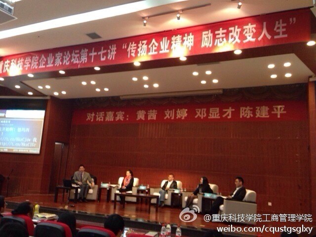 2013年11月21日晚,重科工商管理學院舉辦的第四屆”傳楊企業(yè)精神,勵志改變?nèi)松捌髽I(yè)家巡講會,在學院學術廳舉行,對話嘉賓由重慶市著名企業(yè)家鄧顯才等四人參加,巡講會有近千名大學生到場,現(xiàn)場氣氛活躍,嘉賓精彩的演講深受學子喜歡。